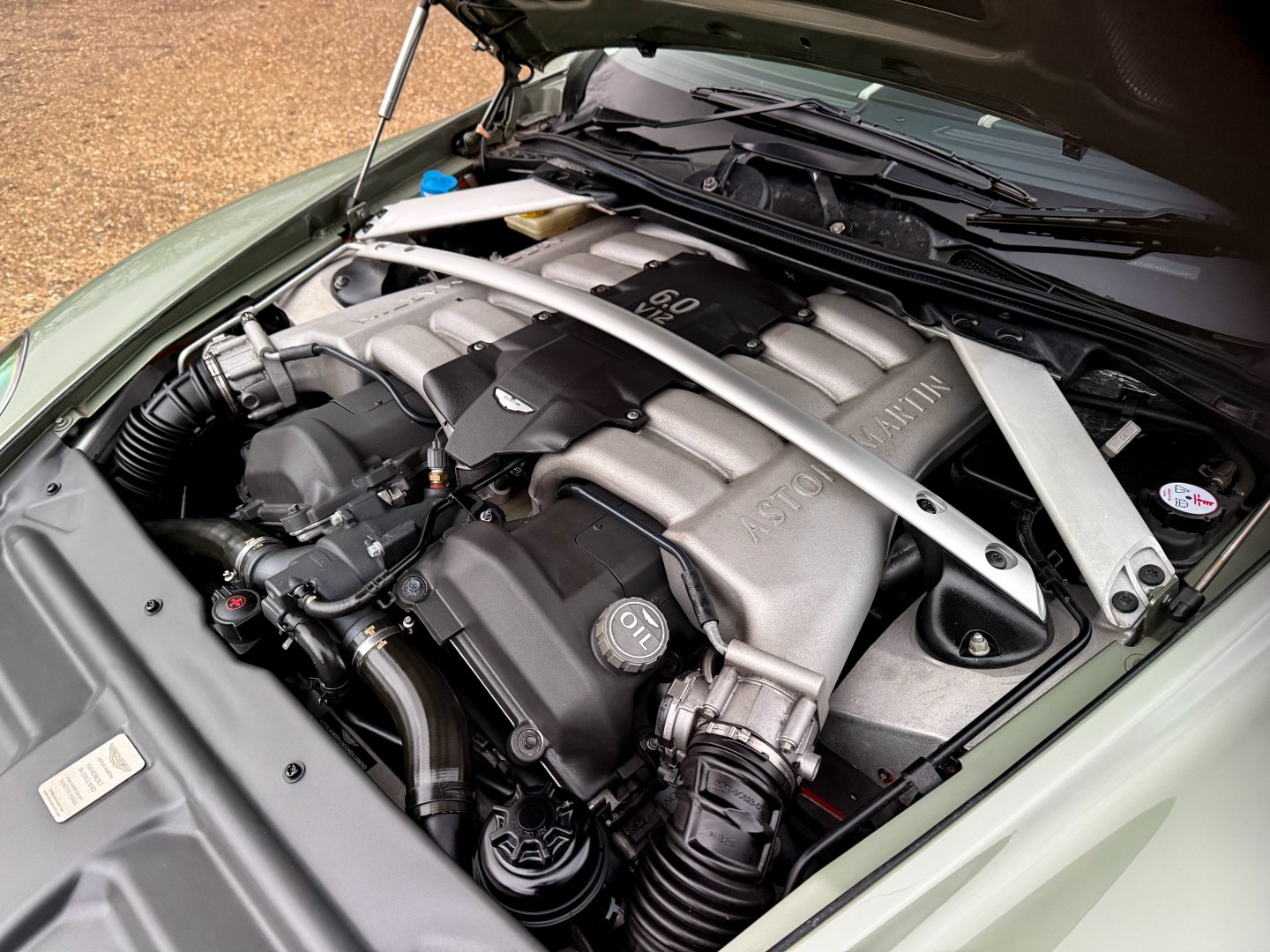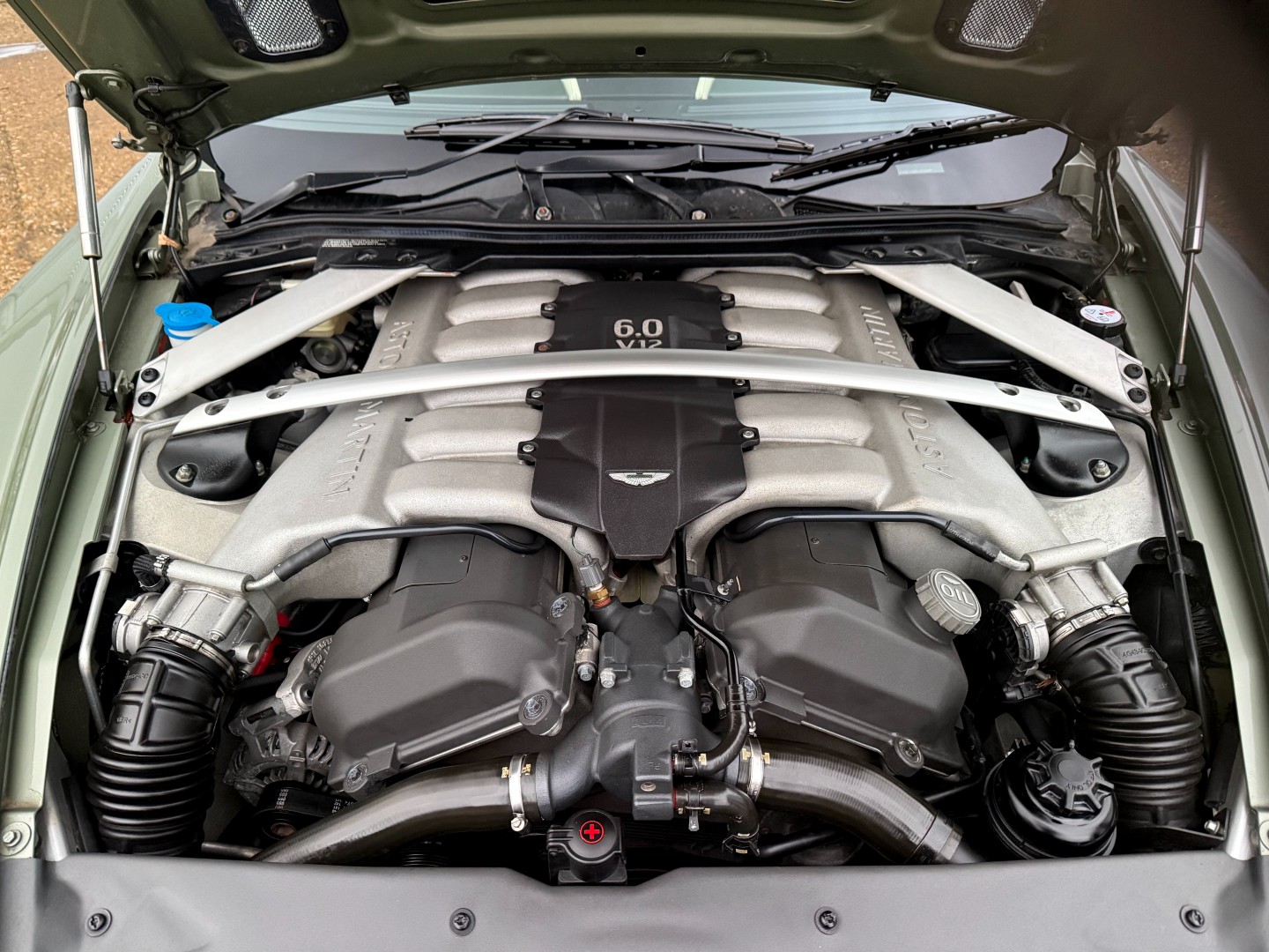 This car presents perfectly, finished in the classic Aston colour, California Sage Green with a Moonstone Shadow interior.